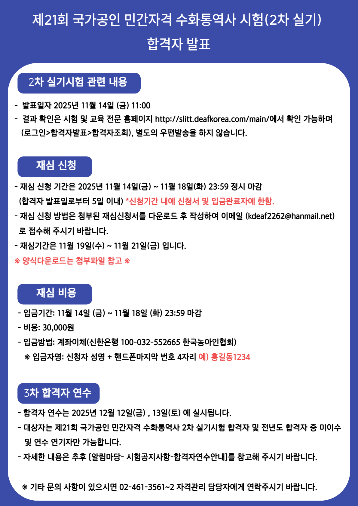 제21회 국가공인 민간자격 수화통역사 실기시험 합격자 발표 안내