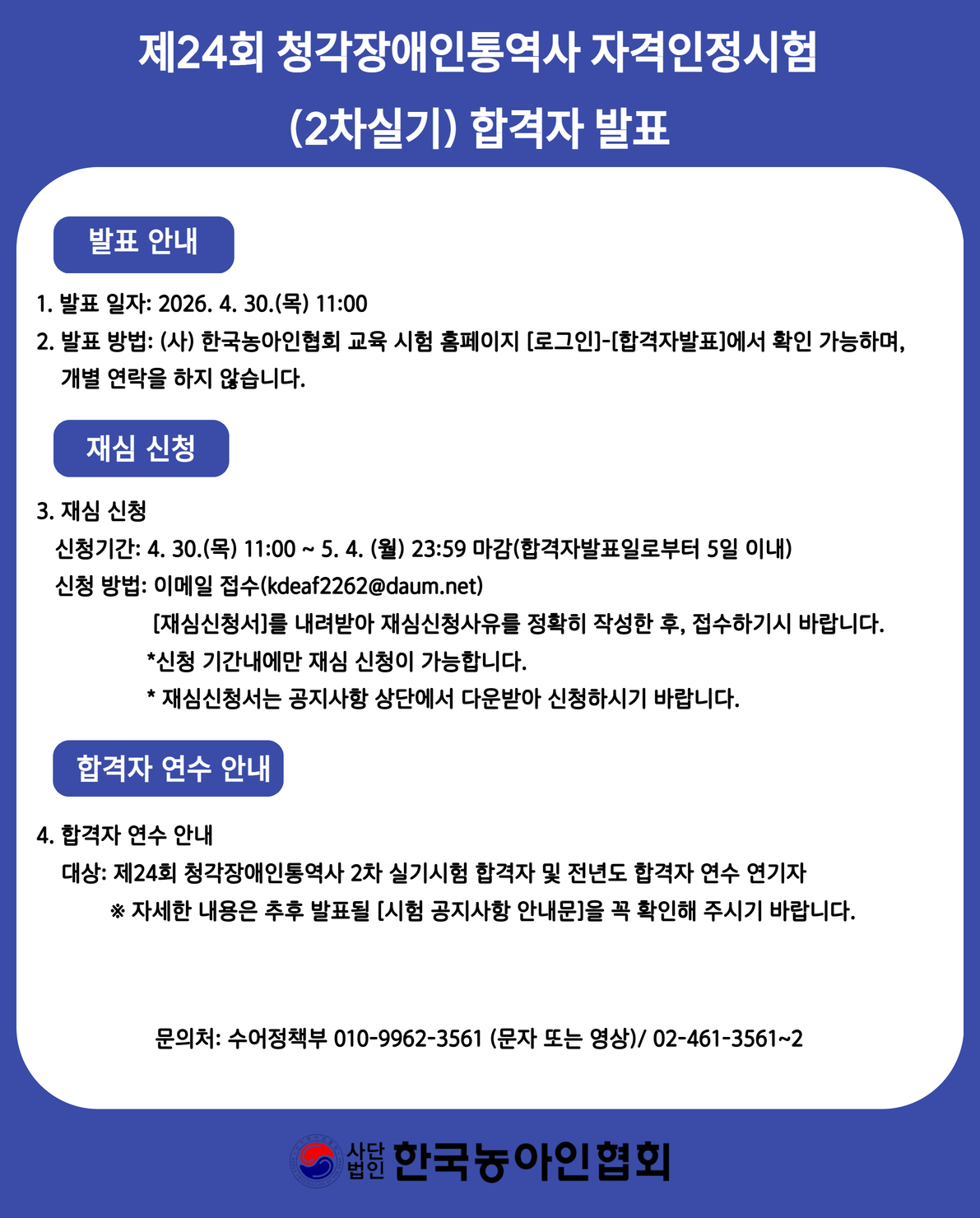 제24회 청각장애인통역사 자격인정시험 (2차실기) 합격자 발표 안내