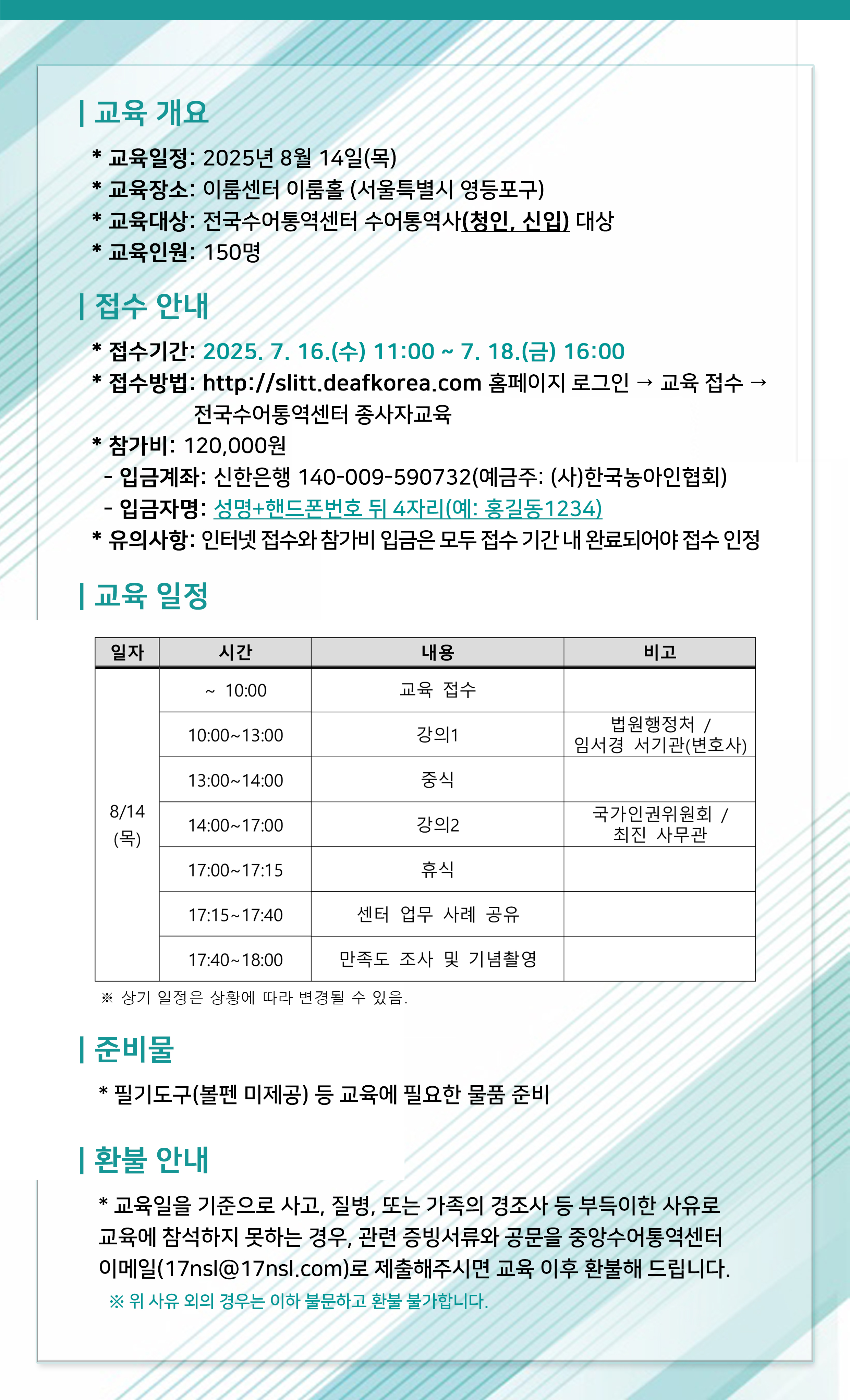 ● 교육일정: 2025년 8월 14일(목)