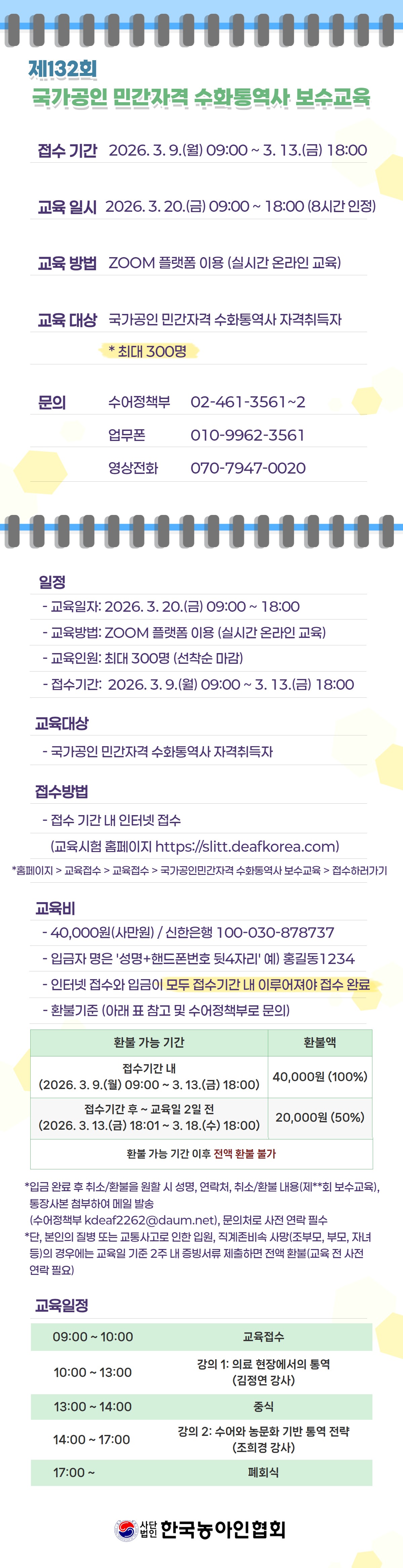 제132회 국가공인 민간자격 수화통역사 보수교육 참가 안내